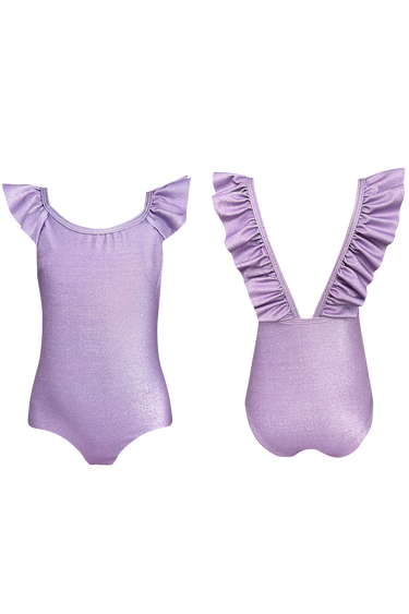 One-piece short sleeve swimsuit with round neckline and deep back neckline with ruffles. The fabric has UPF50+ protection factor which means that it acts as a protective shield against the sun's UV rays. Made in Colombia