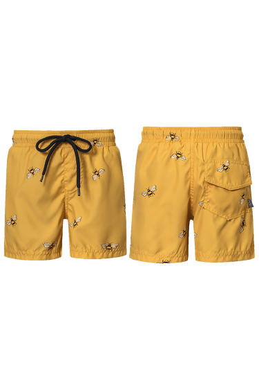 Boys Swimshort with drawstring cord, elastic waistband, mesh liner and a back pocket. In our bees print
