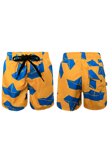 Boys Swimshort with drawstring cord, elastic waistband, mesh liner and a back pocket. In our print DO IT FOR YOURSELF BOAT
