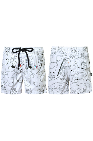 Boys swimshorts with drawstring, elastic waist, inner lining with no holes (not mesh) and back pocket. Made in Colombia