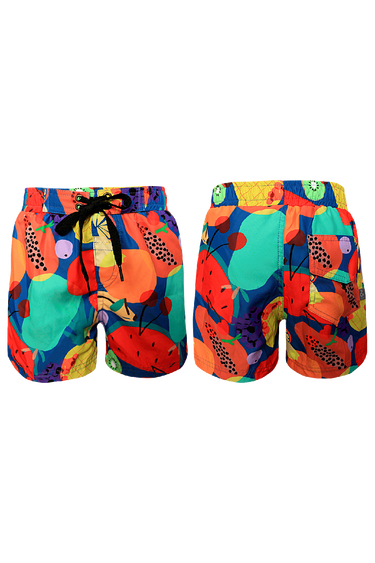 Boys Swimshort with drawstring cord, elastic waistband, mesh liner and a back pocket. In our print BETTER TOGETHER
