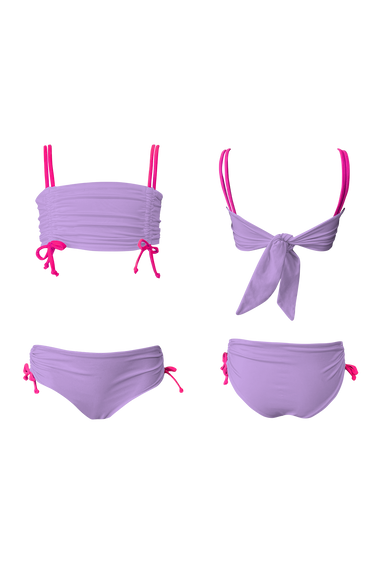 Short sleeve bikini with side ties gathered at the top and bottom for a fun and different look. The fabric has UPF50+ protection factor which means it acts as a protective shield against the sun's UV rays. Made in Colombia.