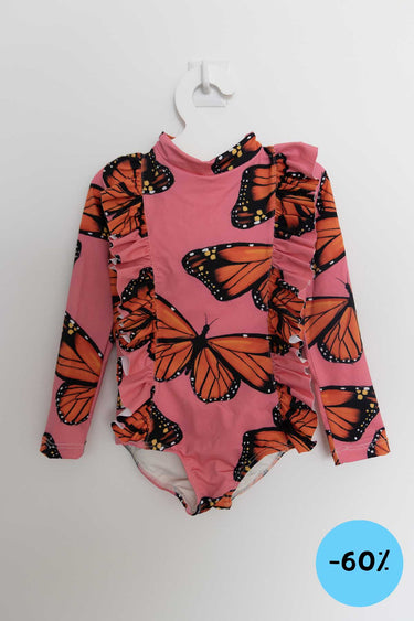 One-piece long sleeve swimsuit with two side ruffles and high neck with zipper in the back. The fabric has UPF50+ protection factor which means that it acts as a protective shield against the sun's UV rays. Made in Colombia