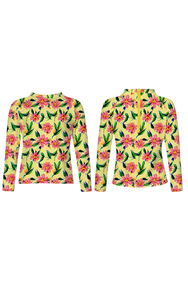 Longsleeved rashguard, high neck and zipper in the back for extra sun protection and functionality. The fabric has UPF50+ protection factor which means that it acts as a protective shield against the sun's UV rays. Made in Colombia