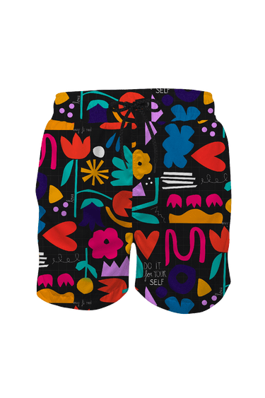 Adult swimshorts with drawstring, elastic waist, inner lining and back pocket. Made in Colombia