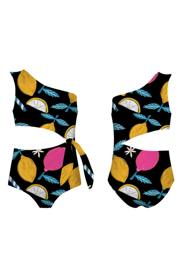 Our one piece swimsuit with one shoulder and asymmetrical cut at the waist is perfect for a summer day, comfortable and soft. Made in Colombia.