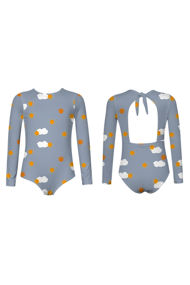 One-piece swimsuit with long sleeves for sun protection, the fabric has the highest ultraviolet protection factor, UPF50+ wich means the fabric creates a barrier against the sun´s UV rays. Made in Colombia.