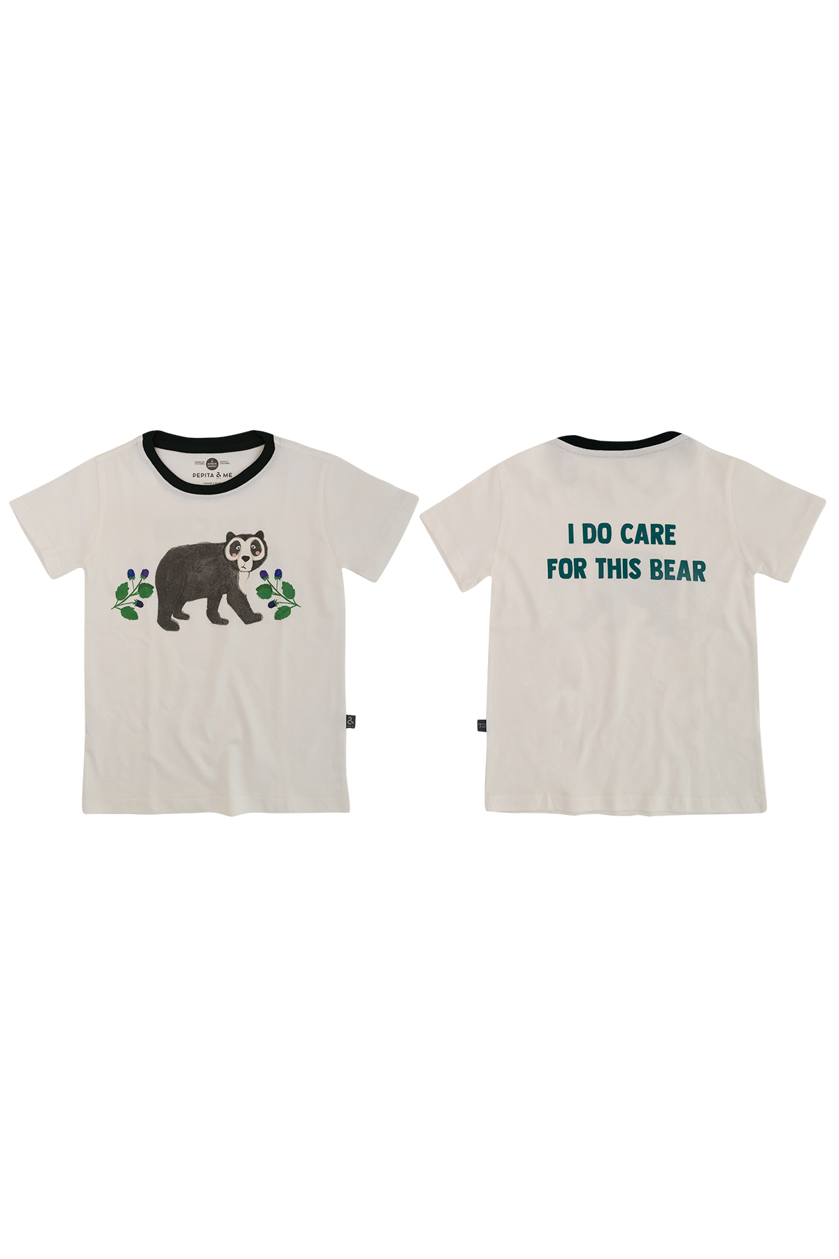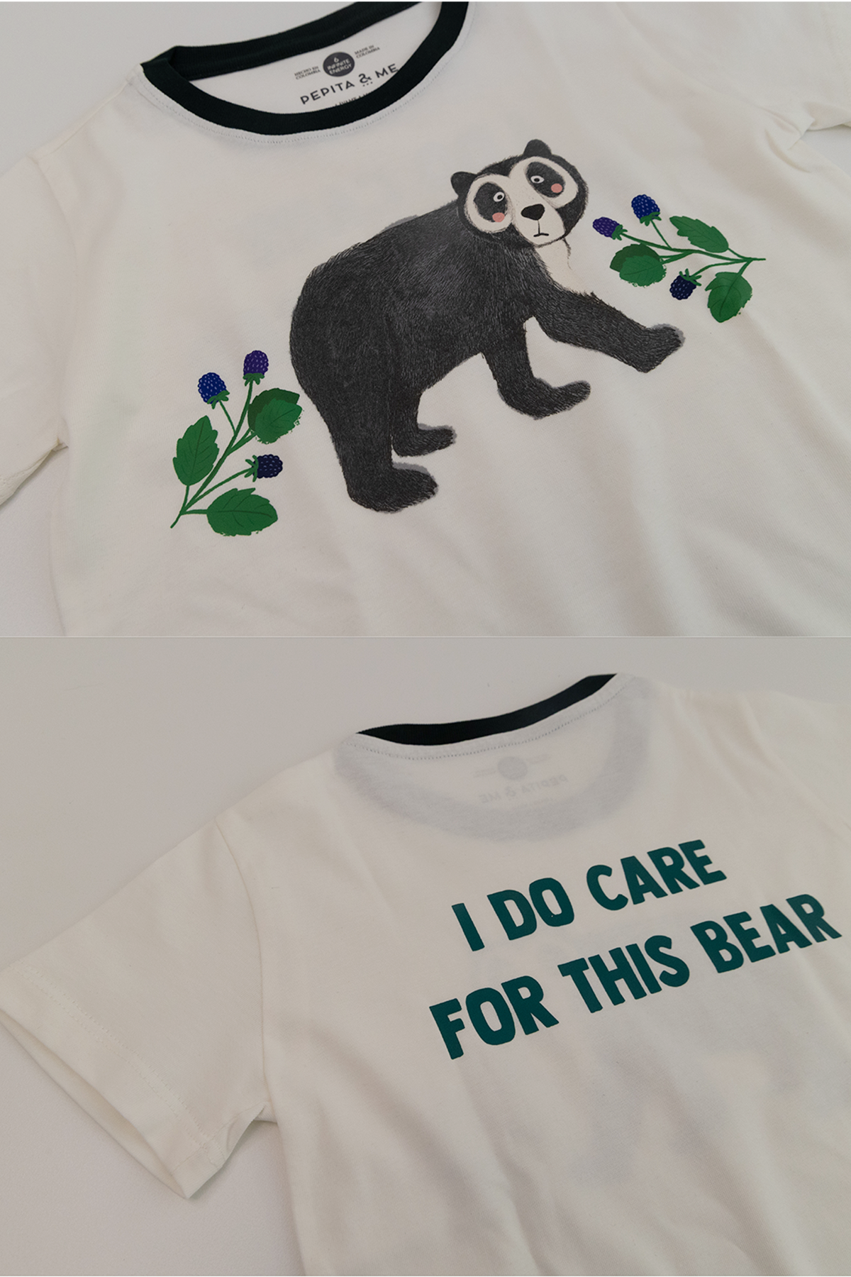 This short-sleeve, crew-neck t-shirt is the perfect balance of comfort and fun. Made from 100% cotton, it's soft, lightweight, and ideal for everyday wear. The front features a spectacled bear print on the front and the message "I DO CARE FOR THIS BEAR" on the back, promoting care for nature and animals. Designed with contrasting blue collar and cuffs for a fun, modern touch. Perfect for everyday wear, school, outings, or outdoor activities. Made in Colombia.