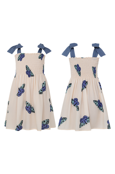 Let her flutter through the day in this adorable butterfly dress! Featuring a charming smocked bodice for a comfy fit and playful tie straps on the shoulders, this dress is as sweet as it is stylish. The whimsical butterfly print and airy skirt make it the perfect outfit for any warm-weather adventure.