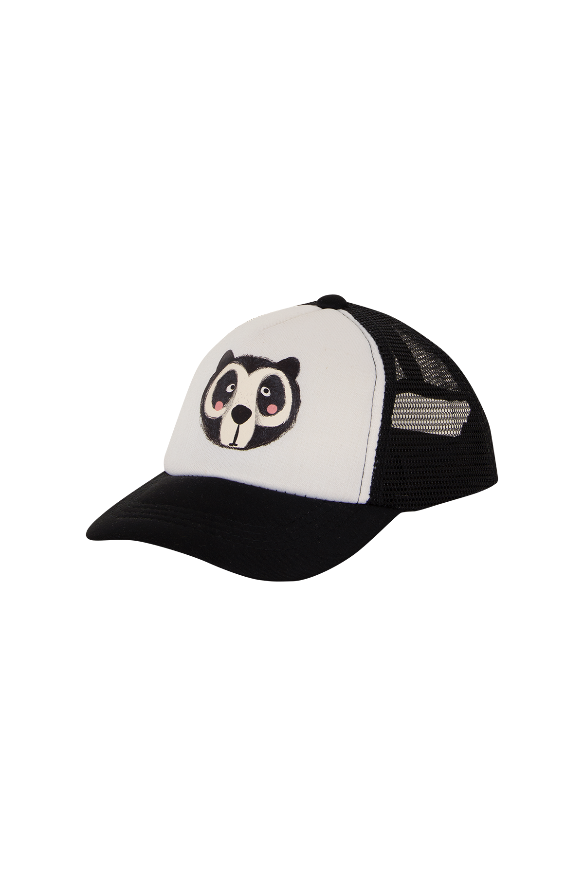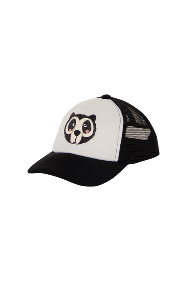 Children’s Trucker Hat with Spectacled Bear Design – A black and white hat for boys and girls, perfect for stylish sun protection. Features a cotton front panel with a cute and playful spectacled bear print, and a breathable black mesh back that keeps kids cool on warm days. Includes a curved visor for better sun protection and an adjustable back strap to fit different head sizes. Ideal for everyday wear, outings, beach trips, park visits, or outdoor activities. This lightweight, comfortable, high-quality unisex kids’ cap is the perfect fashion accessory and sun protection for little ones.
