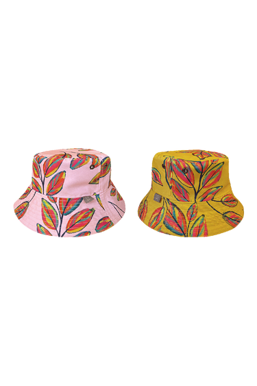 Fast drying, breathable and fully reversible giving your little one multiple options of design and color. Featuring PINK CALATEA print on one side and YELLOW CALATEA on the other. Perfect for a sunny beach day! Made in Colombia. “GRAB&GO”.