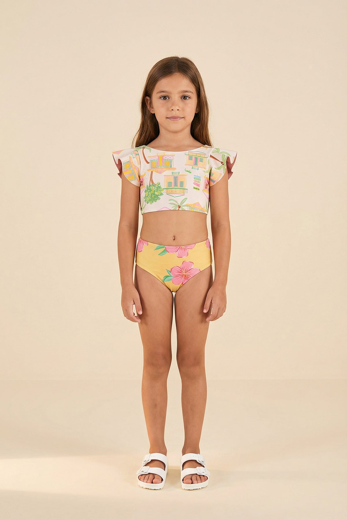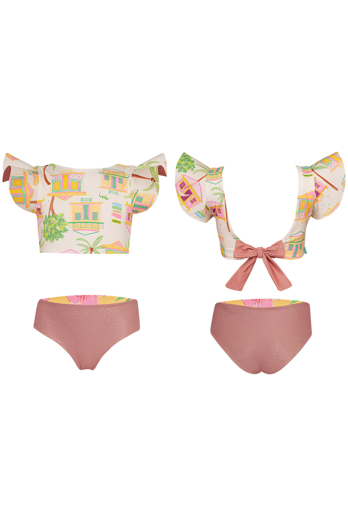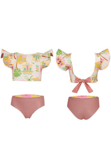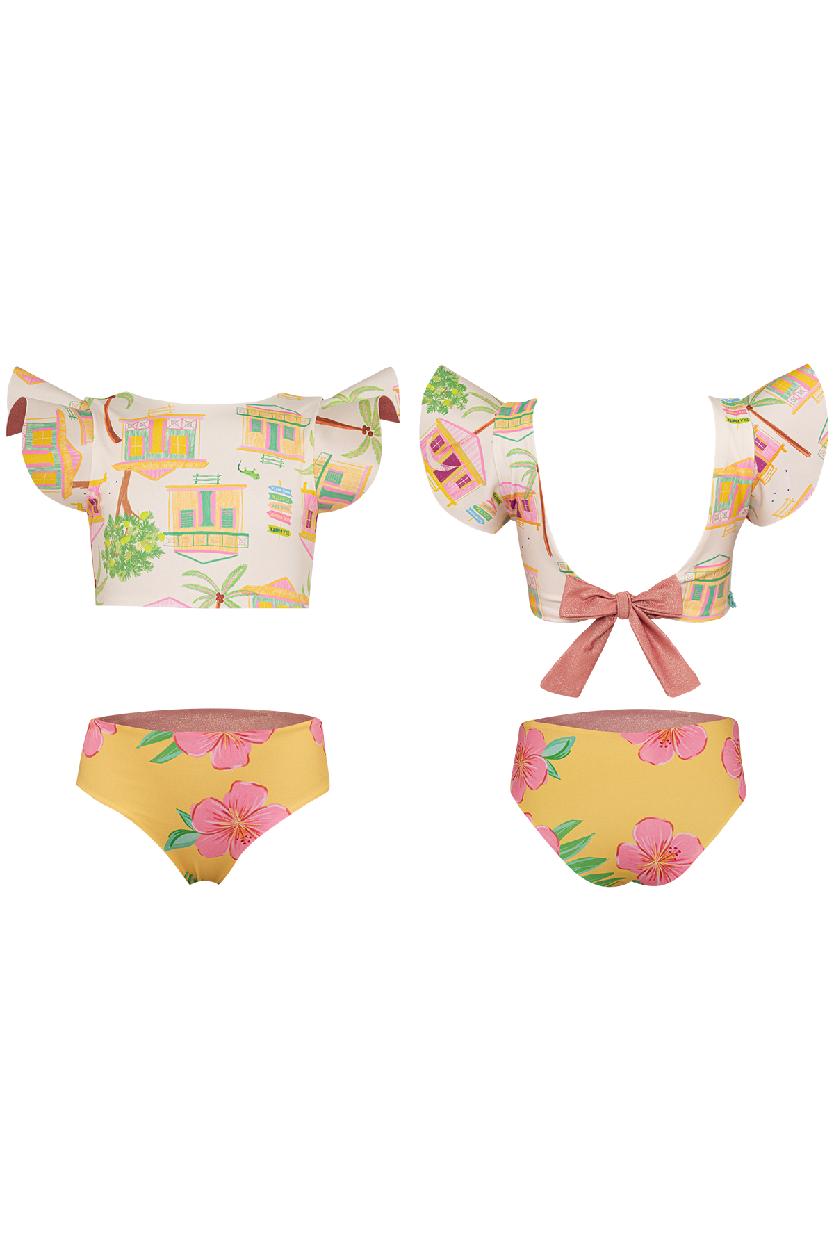 Introducing the bikini version of our best-selling Dayana one-piece, featuring bold flounced sleeves, tie-back closure, and reversible bottoms. Made in Colombia