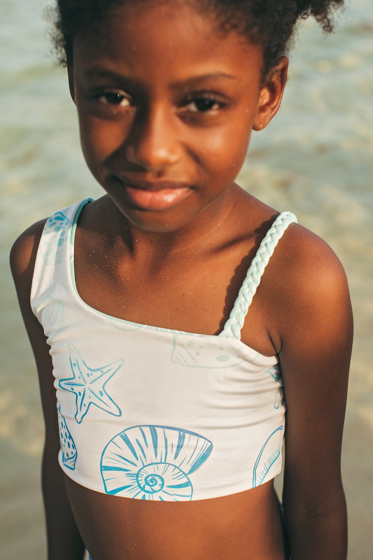 New and stylish bikini for girls. Featuring an original one-shoulder top and classic-cut bottoms, this two-piece set is perfect for your little one to play without limits this summer