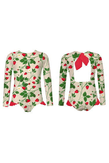 Long sleeve one-piece swimsuit for sun protection, back tie and ruffles on the countour of the leg.The fabric has the highest ultraviolet protection factor, UPF50+ wich means the fabric creates a barrier against the sun´s UV rays. Made in Colombia