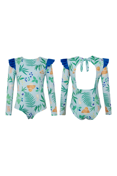 One-piece swimsuit with long sleeves for sun protection, the fabric has the highest ultraviolet protection factor, UPF50+ wich means the fabric creates a barrier against the sun´s UV rays. Made in Colombia