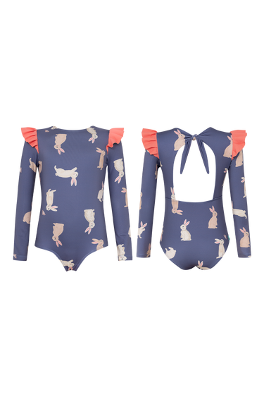 One-piece swimsuit with long sleeves for sun protection, the fabric has the highest ultraviolet protection factor, UPF50+ wich means the fabric creates a barrier against the sun´s UV rays. Made in Colombia