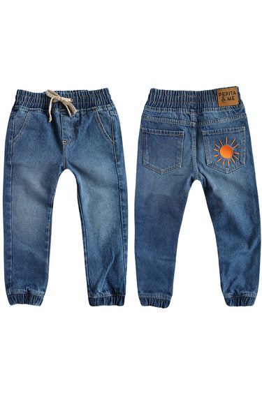 Comfortable and easy-to-wear jeans for kids, thanks to their elastic waistband. The back pockets feature a floral embroidery that adds a special touch. Perfect for any occasion.