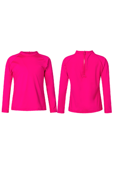 FUCHSIA Long sleeve Rash Guard, high neck and back zipper. The fabric has UPF50+ protection factor.