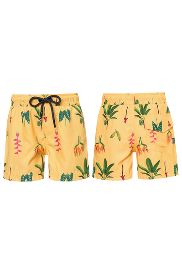 Boys swimshorts with drawstring, elastic waist, inner lining with no holes (not mesh) and back pocket. Made in Colombia
