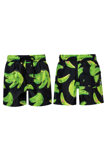 Boys swimshorts with drawstring, elastic waist, inner lining with no holes (not mesh) and back pocket. Made in Colombia