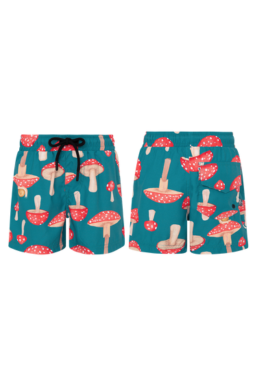 Boys swimshorts with drawstring, elastic waist, inner lining with no holes (not mesh) and back pocket. Made in Colombia