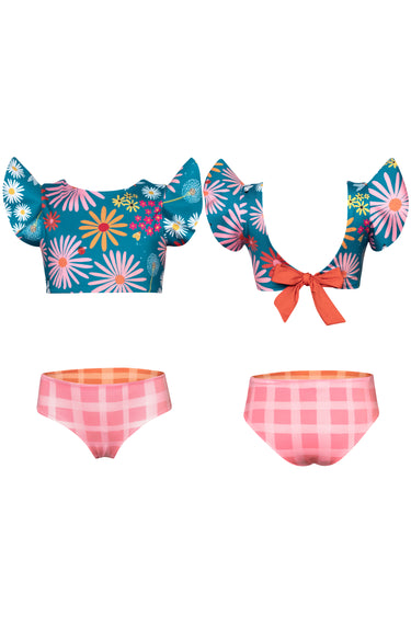 Introducing the bikini version of our best-selling Dayana one-piece, featuring bold flounced sleeves, tie-back closure, and reversible bottoms. Made in Colombia