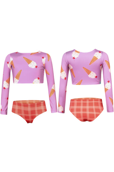Bikini with longsleeve top and reversible bottoms. Made with recycled fabric with UPF50+ protection factor which means that it acts as a protective shield against the sun's UV rays. Made in Colombia