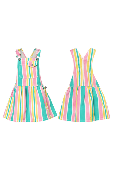 Printed denim jumper for little girls. Perfect for everyday wear, this jumper is easy to pair with any outfit, whether it's a t-shirt, sweater, or swimsuit.