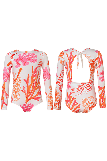 One-piece swimsuit with long sleeves for sun protection, the fabric has the highest ultraviolet protection factor, UPF50+ wich means the fabric creates a barrier against the sun´s UV rays. Made in Colombia