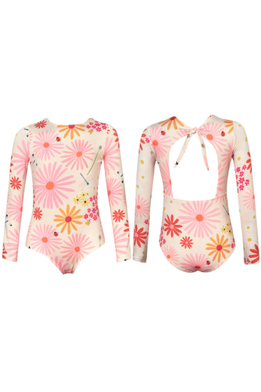 One-piece swimsuit with long sleeves for sun protection, Made of recycled and quick-drying UPF50+ fabric wich means the fabric creates a barrier against the sun´s UV rays. Made in Colombia